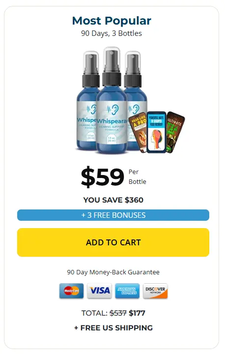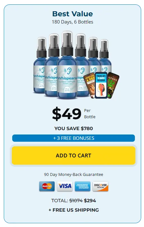 At this moment you can order Whispeara supplement for 82% OFF + FREE Shipping. This is a Limited-Time Offer and it won’t be available for long.
